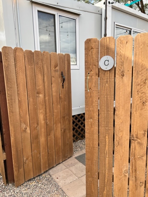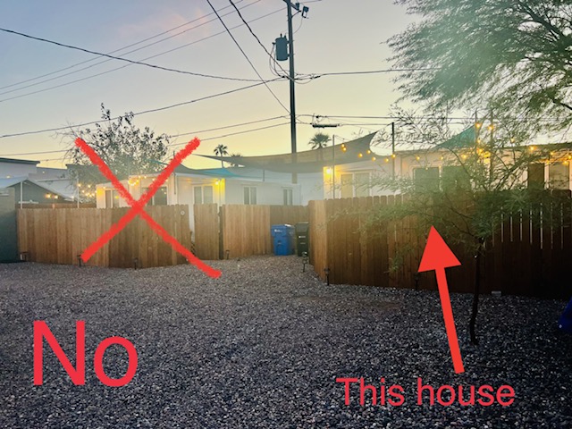 Please make sure you are standing in front of the correct house pictured below before trying to unlock the house. The house is located behind and to the left of the brick house numbered 322. Please see the instructions below on where to park. Please DO NOT BLOCK THE DRIVEWAY for any reason. The house has a “C” on the fence next to the gate. You may also park anywhere on the street in front of the brick house No trailers or RV’s may park behind the house. Trailers and RV’s must be parked on the street.