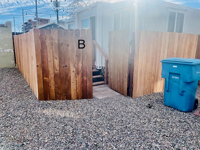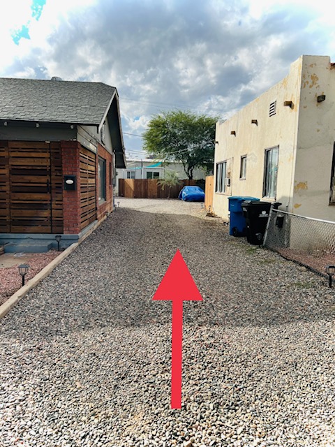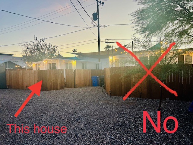 Please make sure you are standing in front of the correct house pictured below before trying to unlock the house. The house is located behind and to the left of the brick house numbered 322. Please see the instructions below on where to park. Please DO NOT BLOCK THE DRIVEWAY for any reason. The house has a “B” on the fence next to the gate. You may also park anywhere on the street in front of the brick house No trailers or RV’s may park behind the house. Trailers and RV’s must be parked on the street.